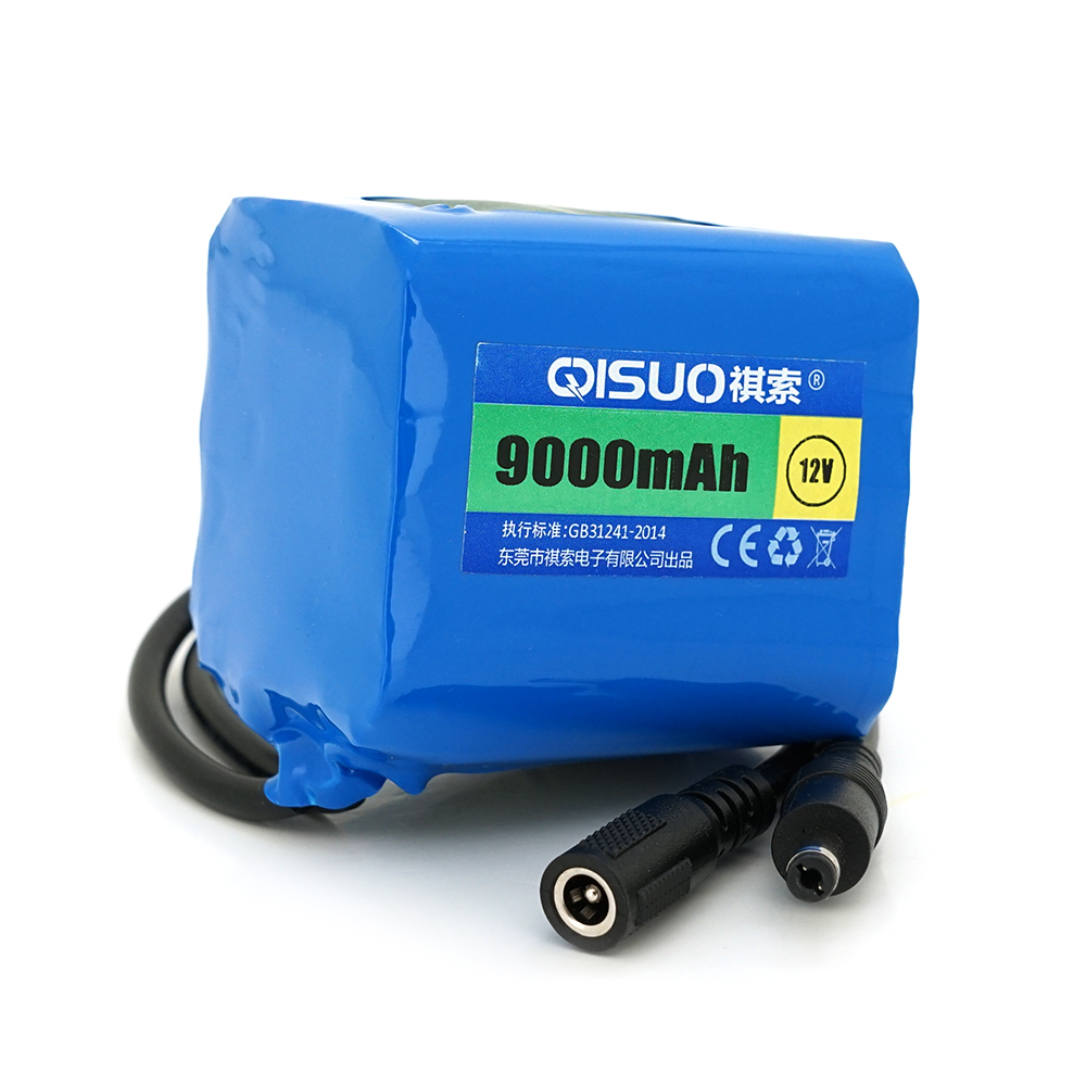 Акумуляторна батарея літієва QiSuo 12V 9A з елементами Li-ion 18650, DC5.5×2.1, (61x57x68mm)